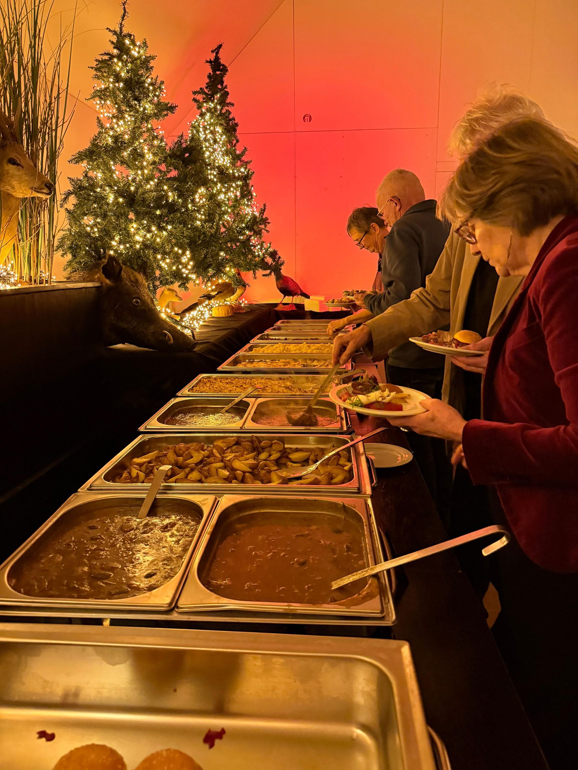 Na alle muziek was het tijd om te eten, en dat was echt een hoogtepunt. Er stond een heerlijk wildbuffet klaar met onder andere eend, haas, gans, ree, wildzwijn. Alles vers van lokale jagers en met liefde bereid door de keuken van Grand Café Roos. Een buffet waar je rustig voor terugkomt.