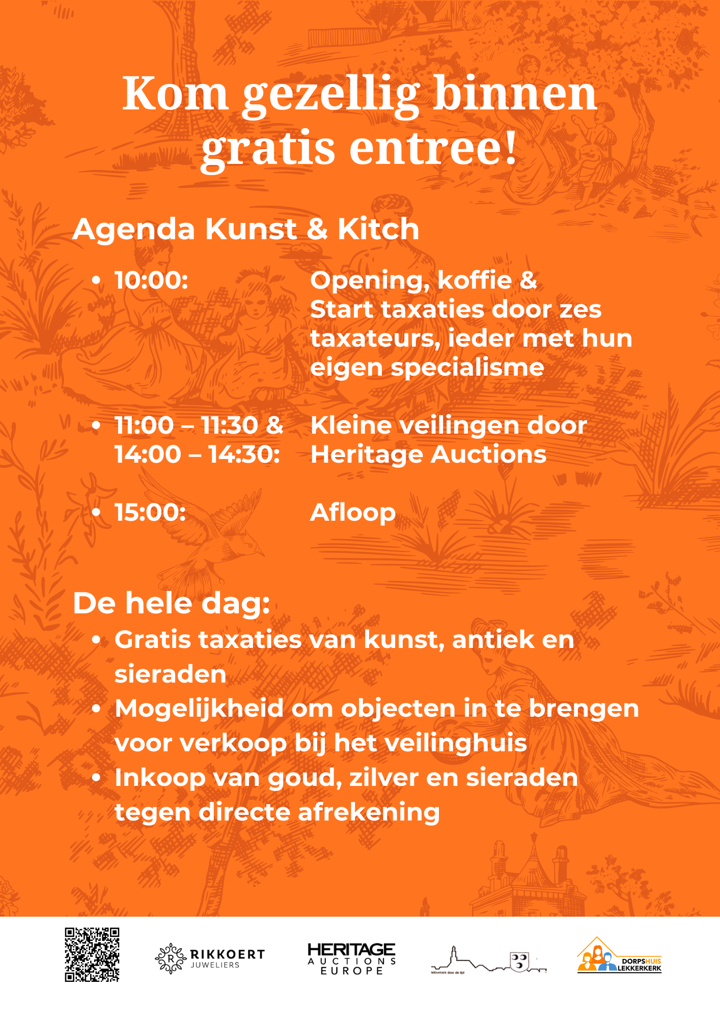 Zaterdag 8 november staat het Dorpshuis Lekkerkerk helemaal in het teken van Kunst & Kitch! Een dag vol bijzondere verhalen, verborgen schatten en deskundige taxaties. Iedereen is van harte welkom – de toegang is gratis.